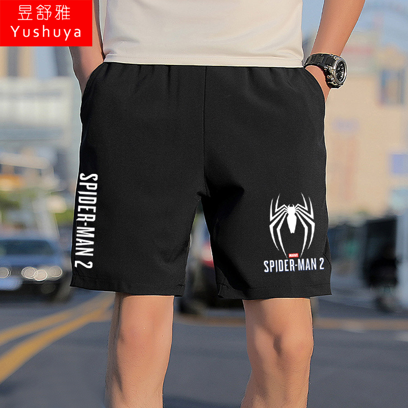 运动休闲裤 漫威蜘蛛侠2游戏周边蜘蛛人速干短裤 中裤 5五分裤 子男士
