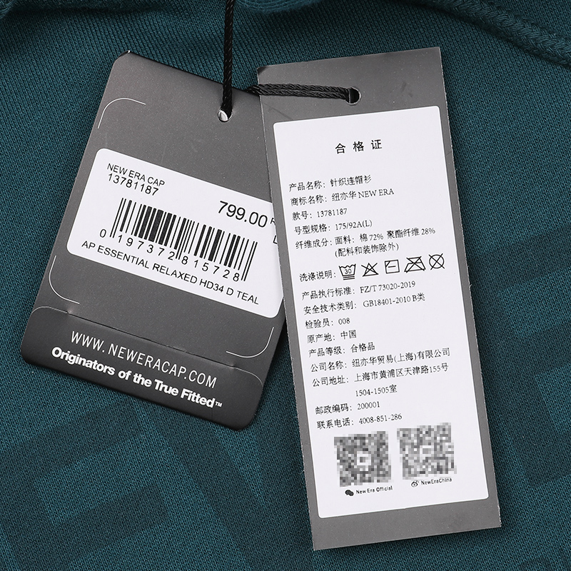 连帽套头卫衣 加绒保暖运动潮流长袖 New Era纽亦华秋冬男女情侣款