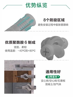 标杰空心墙专用膨胀管 空心砖墙窗帘电视膨胀螺丝配不锈钢自攻钉