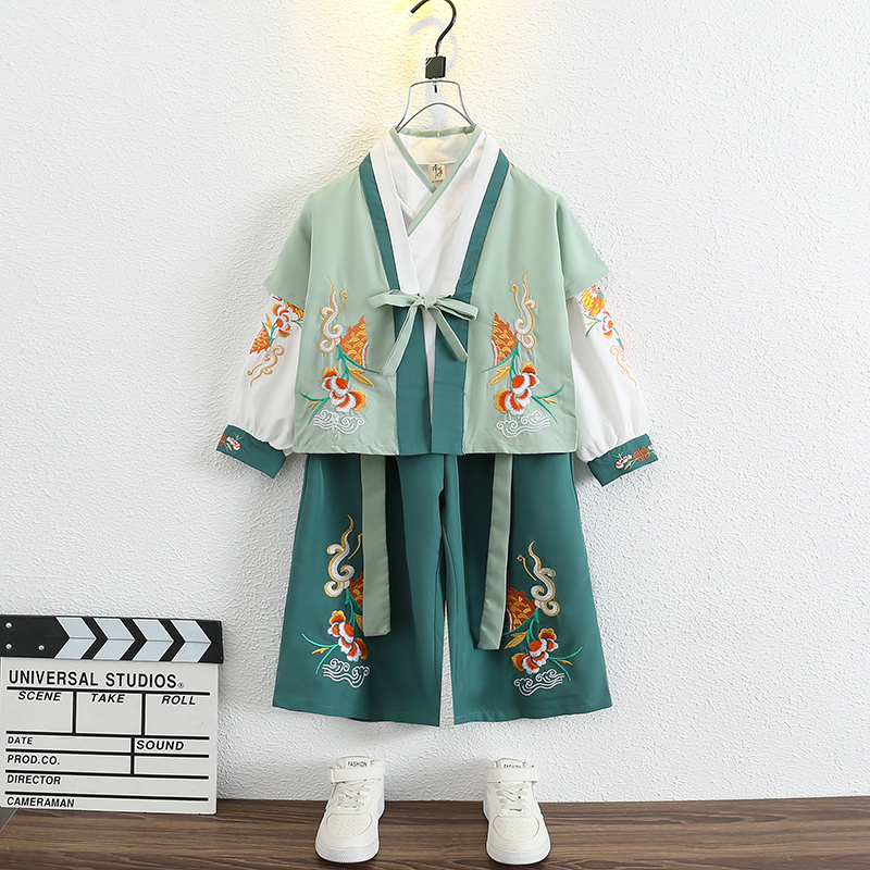 儿童古风男孩改良国学演出服 中国风宝宝唐装 汉服男童古装 春秋套装