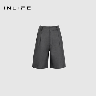 春高腰直筒宽松显瘦五分裤 女2025新款 短裤 伊纳芙休闲百搭简约西装