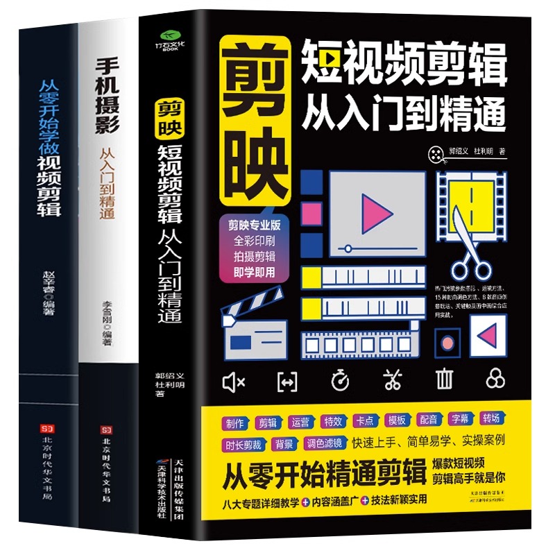 从零开始学做视频剪辑 正版 手机摄影从入门到精通 剪映短视频剪辑从入门到精通 抖音快手自媒体短视频制作剪辑教学拍摄技巧书 3册