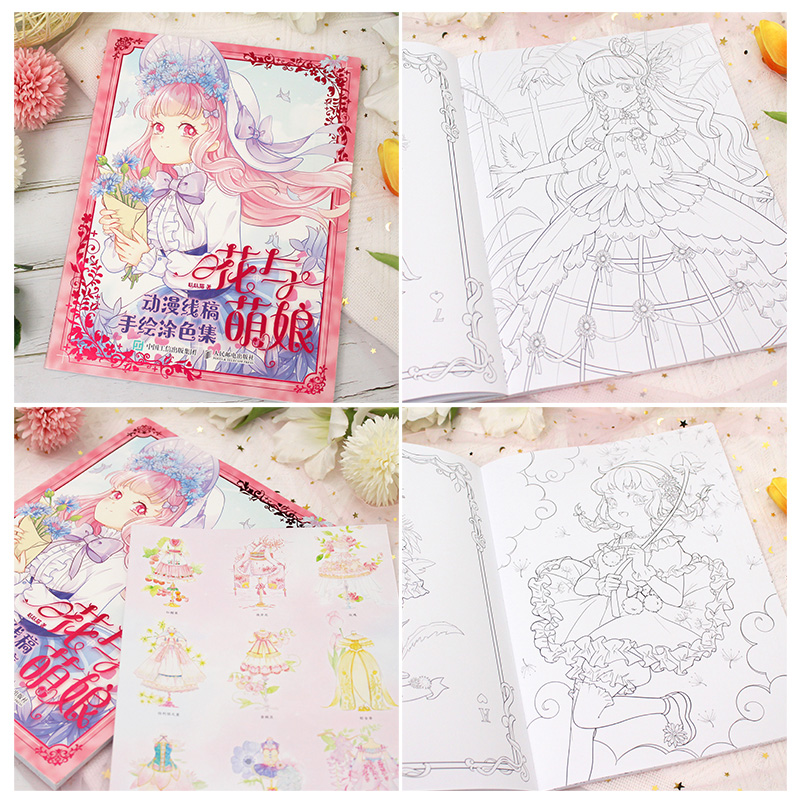 随书附赠海报及上色教程 结合花语含义绘制36幅美少女插画 人民邮电出版 花与萌娘 新华书店正版 哒哒猫著 社 动漫线稿手绘涂色集