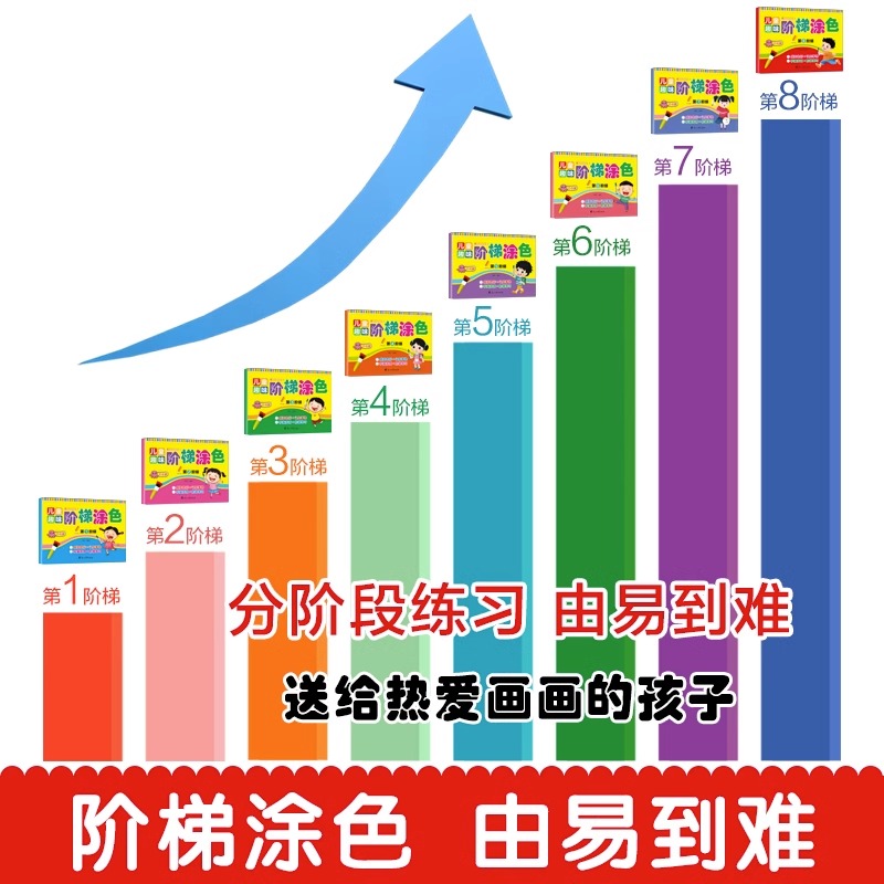 6岁绘本幼儿园三岁宝宝绘画启蒙教材学画画图书简笔画入门自学零基础幼儿创意美术涂色画线描画书籍 全8册 儿童趣味阶梯涂色书2