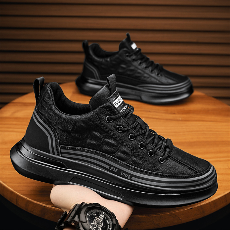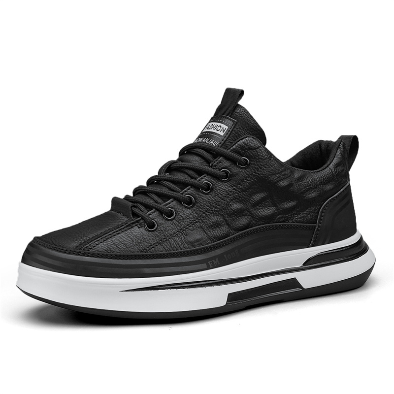 潮流防滑软底轻便百搭套脚黑色鞋 男鞋 皮面透气休闲运动鞋 新款 秋季