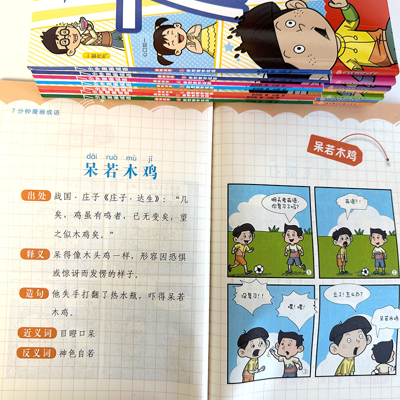 12岁儿童趣味爆笑成语接龙游戏绘本老师推荐 语文成语释义造句课外阅读书籍七分钟漫画成语故事 全套8册正版 7分钟漫画成语小学生版