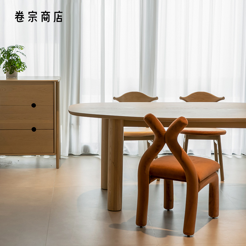 X型餐椅 卷宗商店 Six 白色中古异形设计实木餐椅 Sun