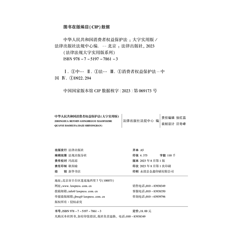 双色 32开 法律法规大字实用版 正版 法律出版 大字实用版 系列 社9787519778613 2024适用中华人民共和国消费者权益保护法