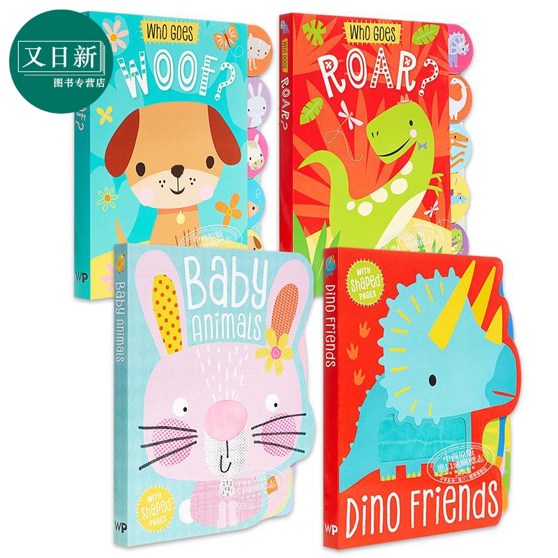 小狗Woof 又日新 Book 英文原版 Animals 动物宝宝Baby 恐龙朋友Dino 恐龙Roar 低幼儿童纸板异形书4册套装 Board MBI