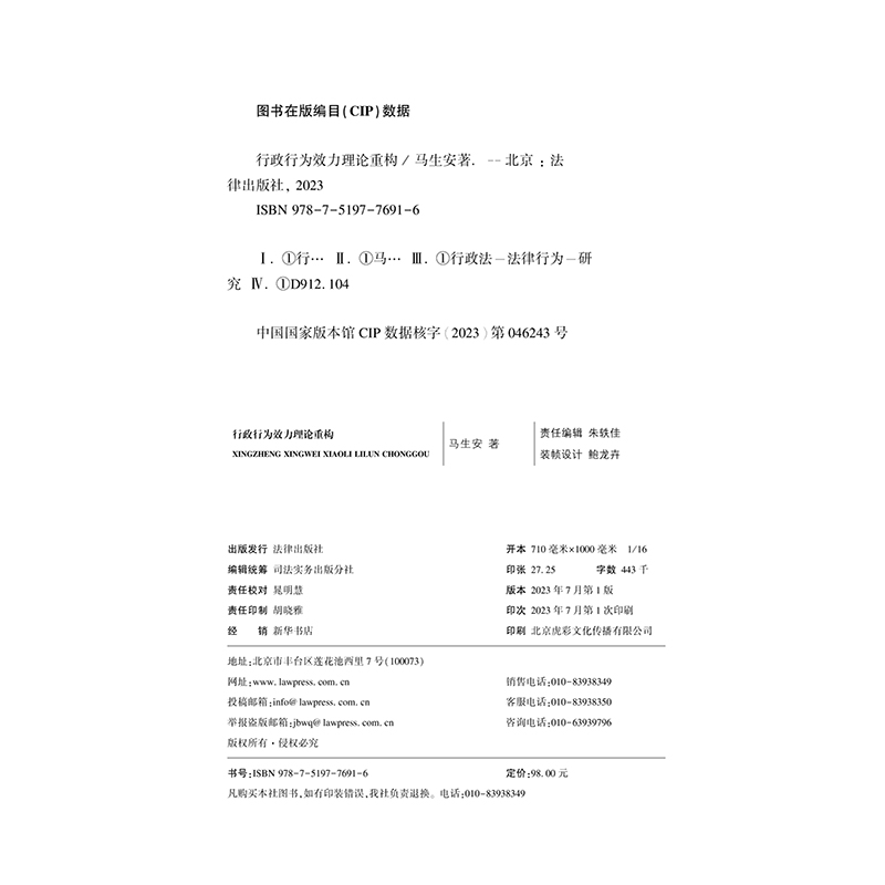 法律出版 正版 马生安 行政行为效力理论重构 社9787519776916 2023新书