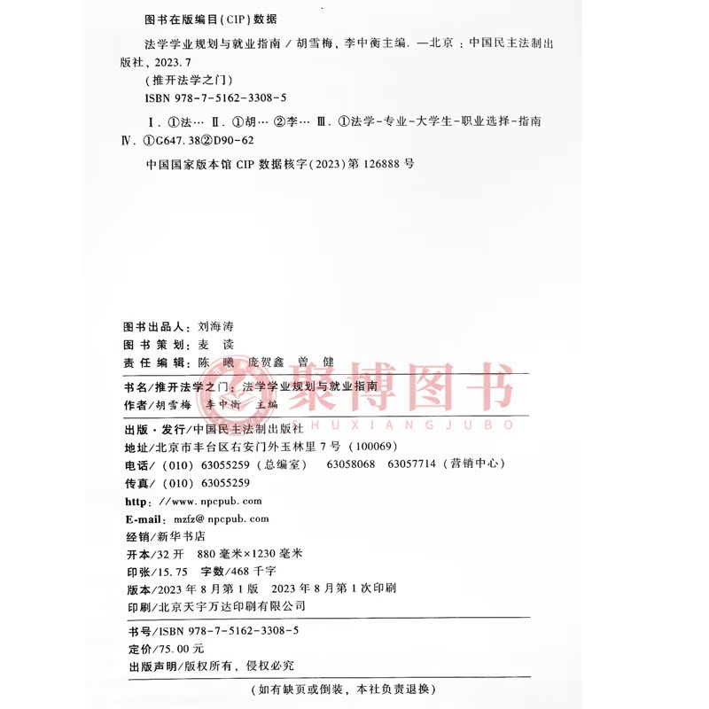 主编 9787516233085 推开法学之门 社 中国民主法制出版 法律人职业规划 李中衡 胡雪梅 法学学业规划与就业指南 2023新书 正版