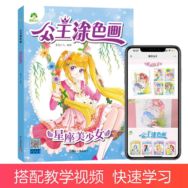 爱德少儿 涂色秀儿童画画本阶梯涂色画宝宝学画画早教益智涂鸦填色本梦幻古风公主星座美少 公主涂色画本绘画册公主画画本公主换装