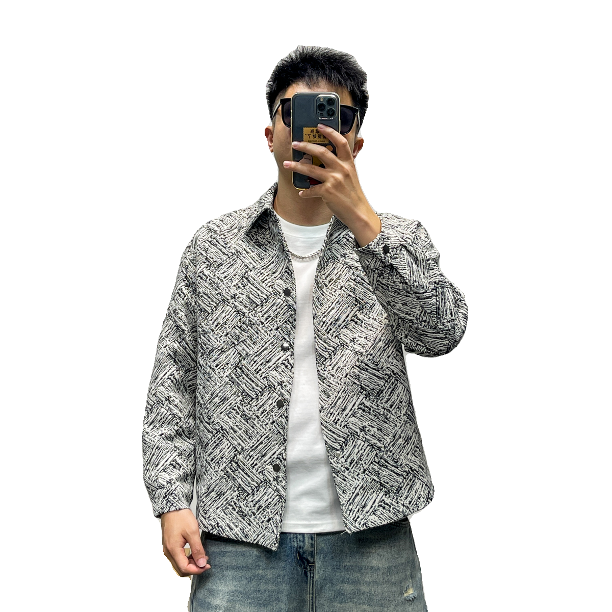 查尔斯桃心2025年新款 可拆卸连帽牛仔夹克男磨白单排扣多口袋外套