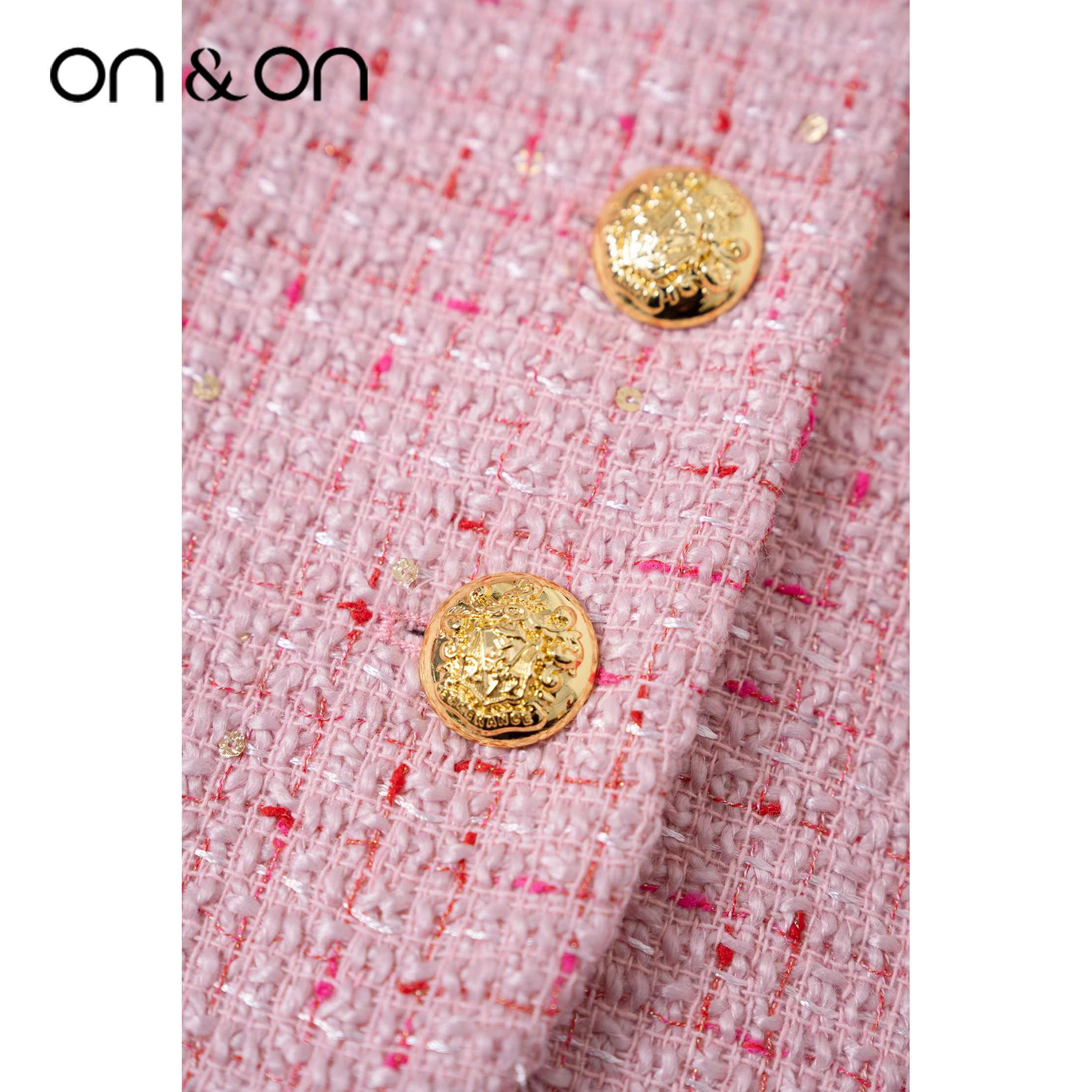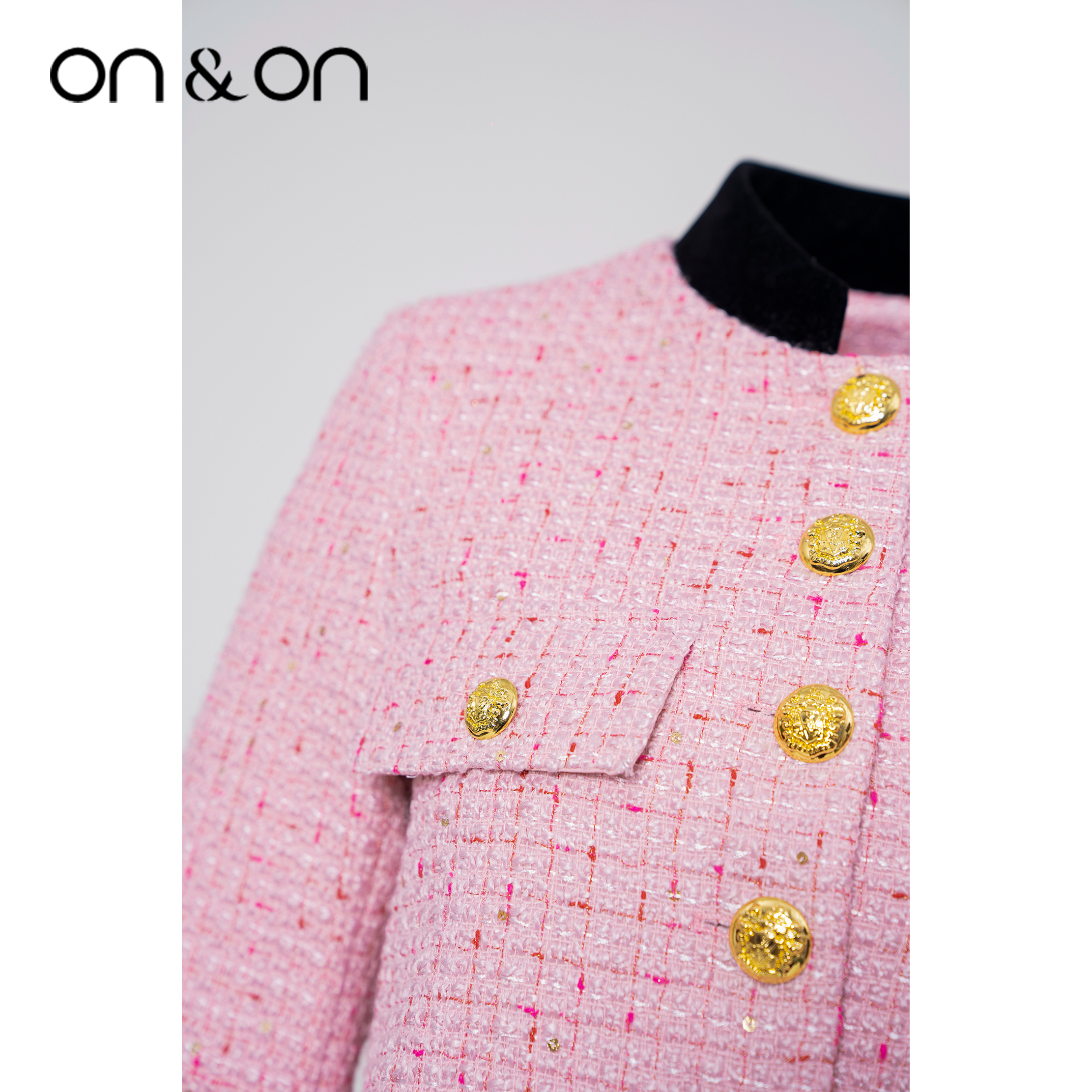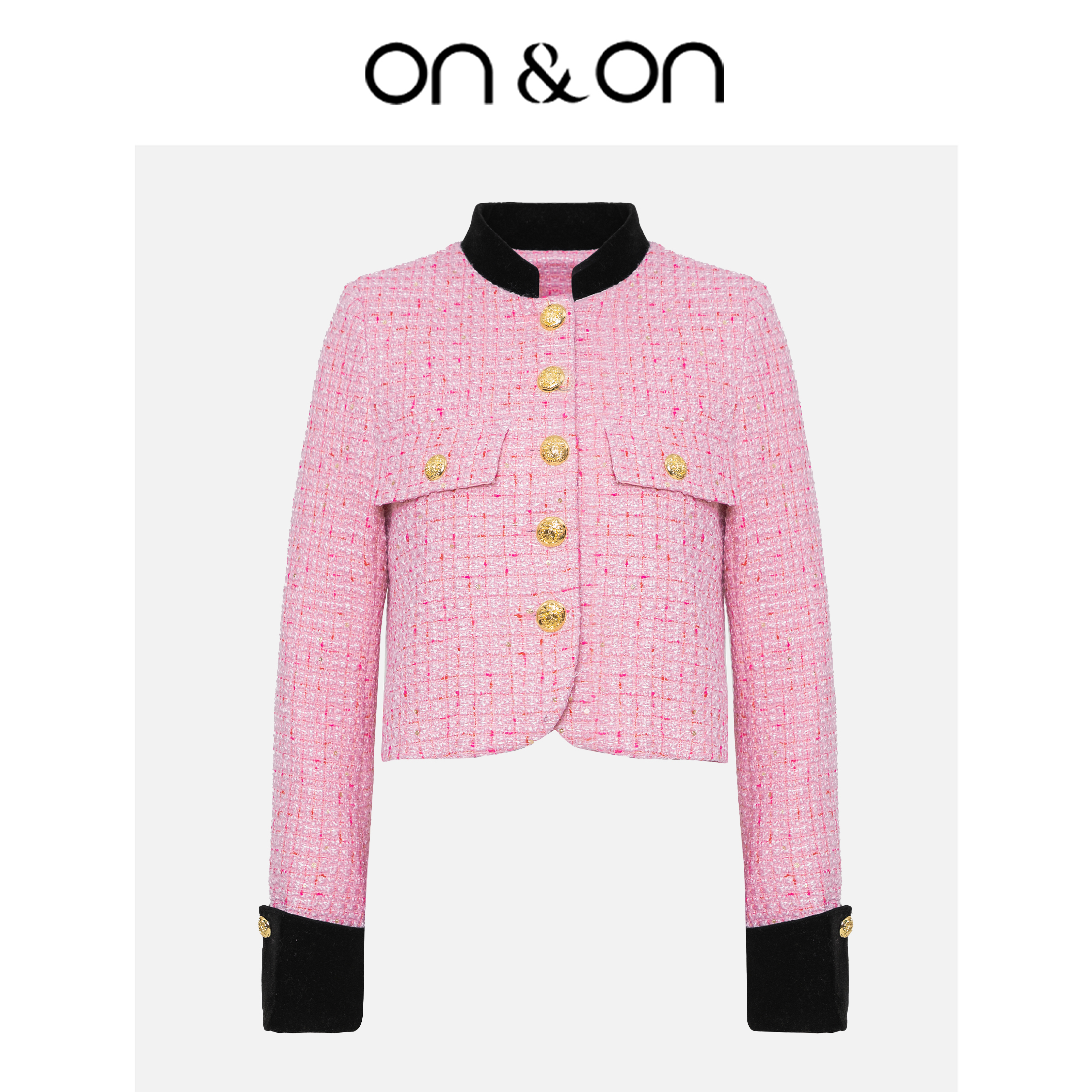 短款 韩系时尚 立领羊毛立领拼色小香风外套 安乃安2025秋季 ON&ON