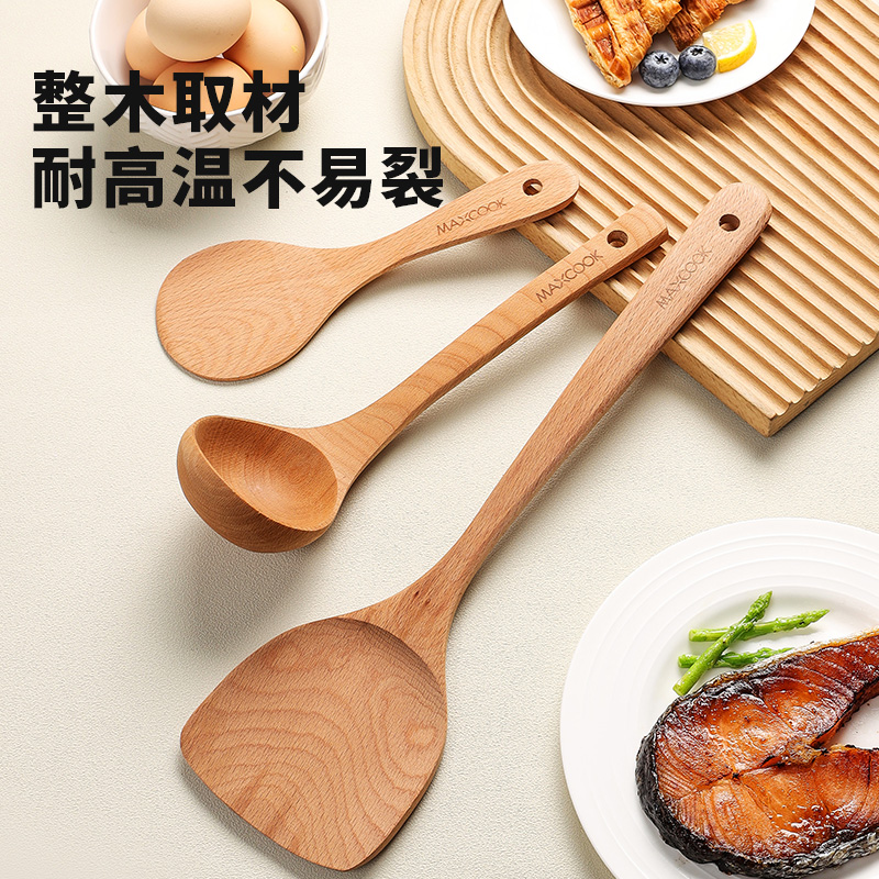 美厨家用锅铲木质铲勺耐高温木铲木勺饭勺汤勺炒茶铲子不粘锅专用