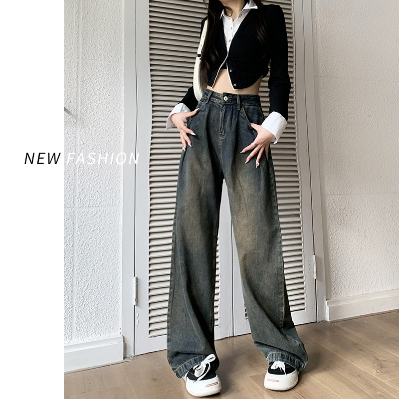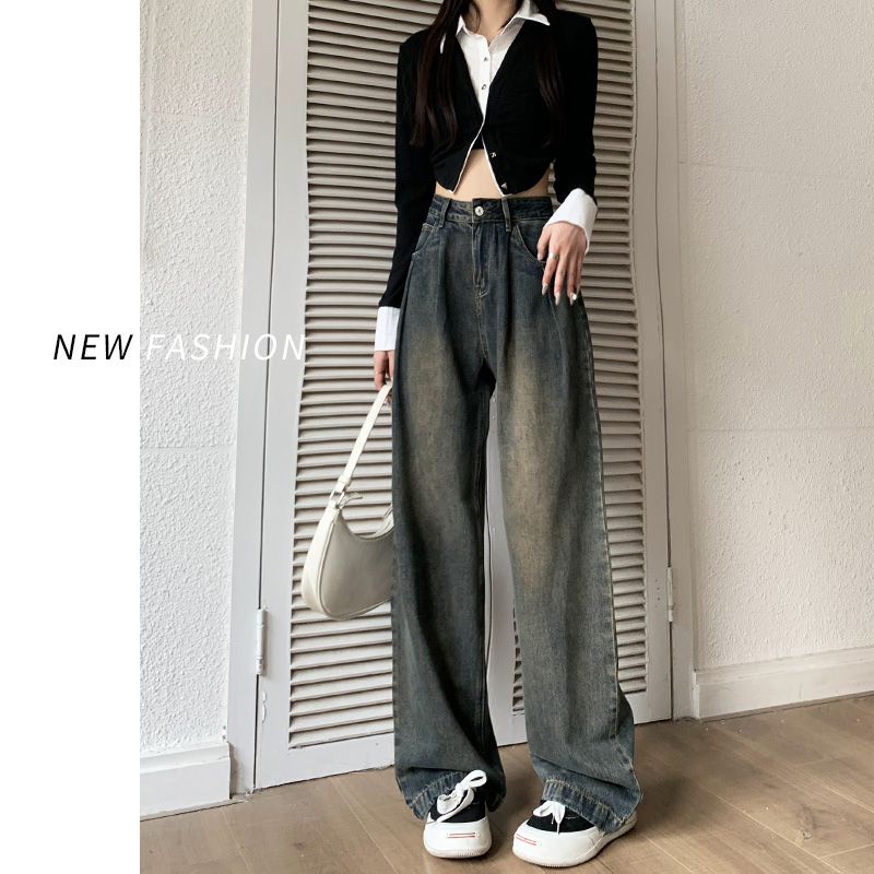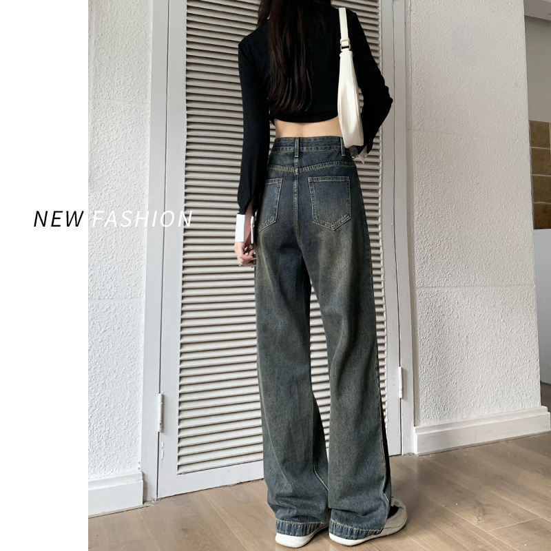 女宽松涂鸦阔腿直筒长裤 2025秋季 百搭设计感牛仔裤 时尚 子 新款
