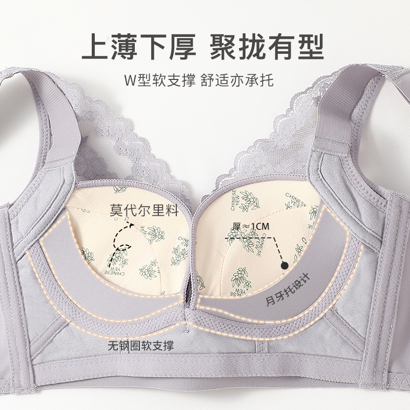 六月玫瑰蕾丝性感无痕女小胸显大侧收内衣小胸聚拢无钢圈文胸新款