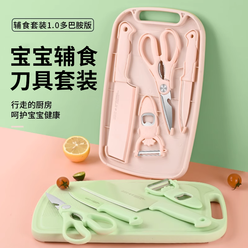 99%抗菌宝宝辅食刀具套装 组合儿童婴儿全套厨具菜刀菜板二合一