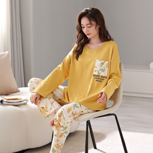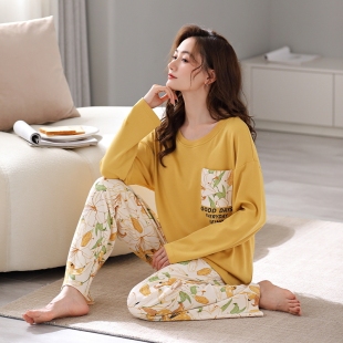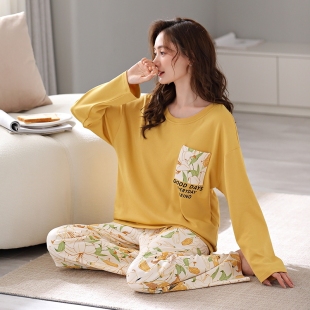 纯棉女士长袖 睡衣新款 秋款 家居服秋冬全棉大码 芬腾春秋季 套装 女款