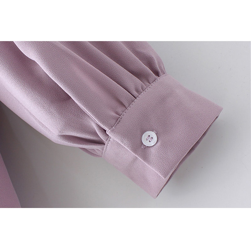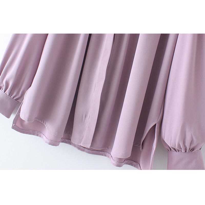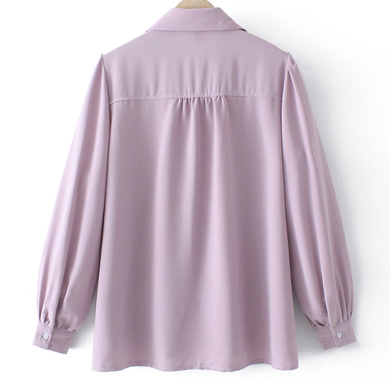 尖领泡泡袖 女法式 上衣宽松遮肚雪纺衬衣秋 衬衫 胖mm小众设计感长袖