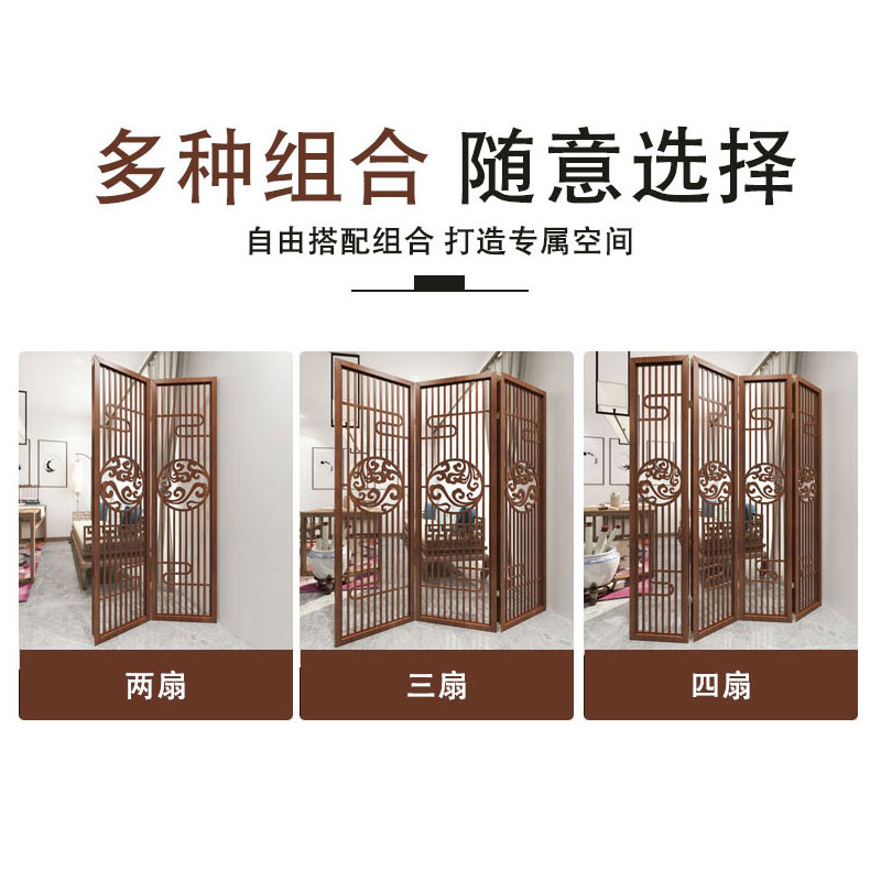 新中式 饰镂空雕花简约进门办公室遮挡 屏风隔断实木玄关折屏折叠装