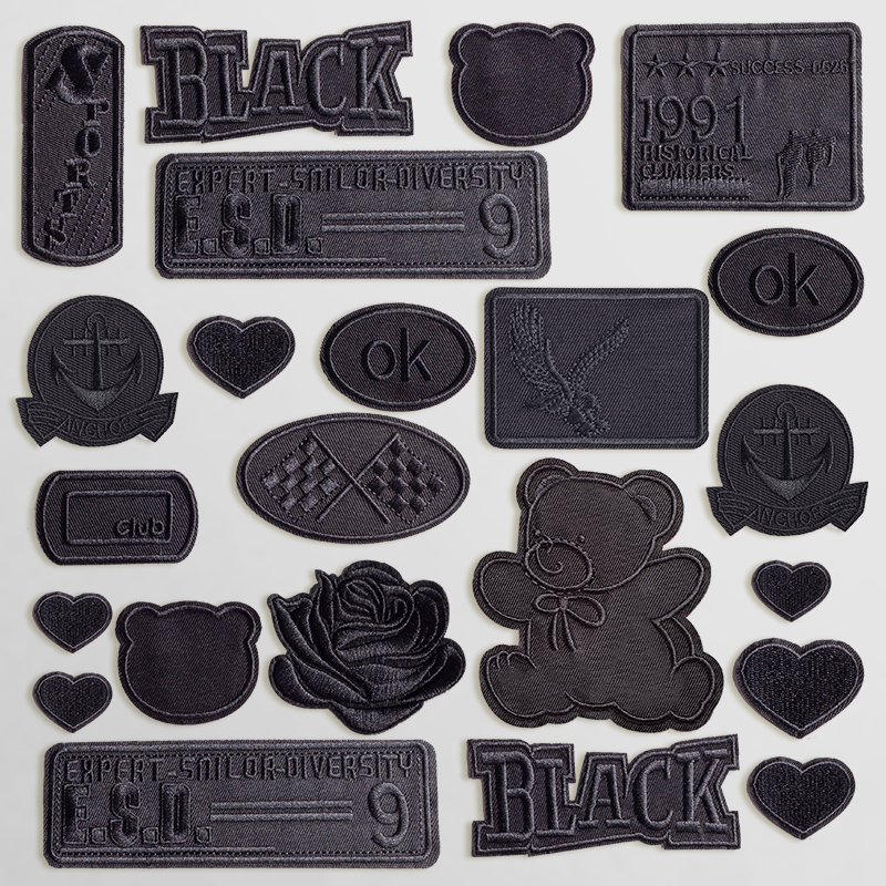衣服贴补丁贴自粘免缝破洞修复儿童羽绒服黑色图案刺绣布贴修补贴
