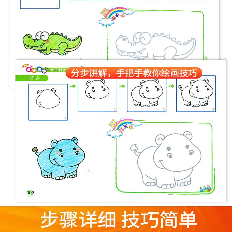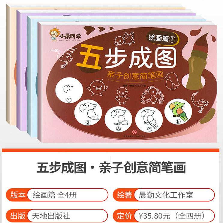 小晨同学五步成图亲子创意简笔画幼儿儿童涂色手绘本入门模板启蒙大全绘画启蒙教材亲子互动涂鸦少儿简易入门自学零基础学画画教学