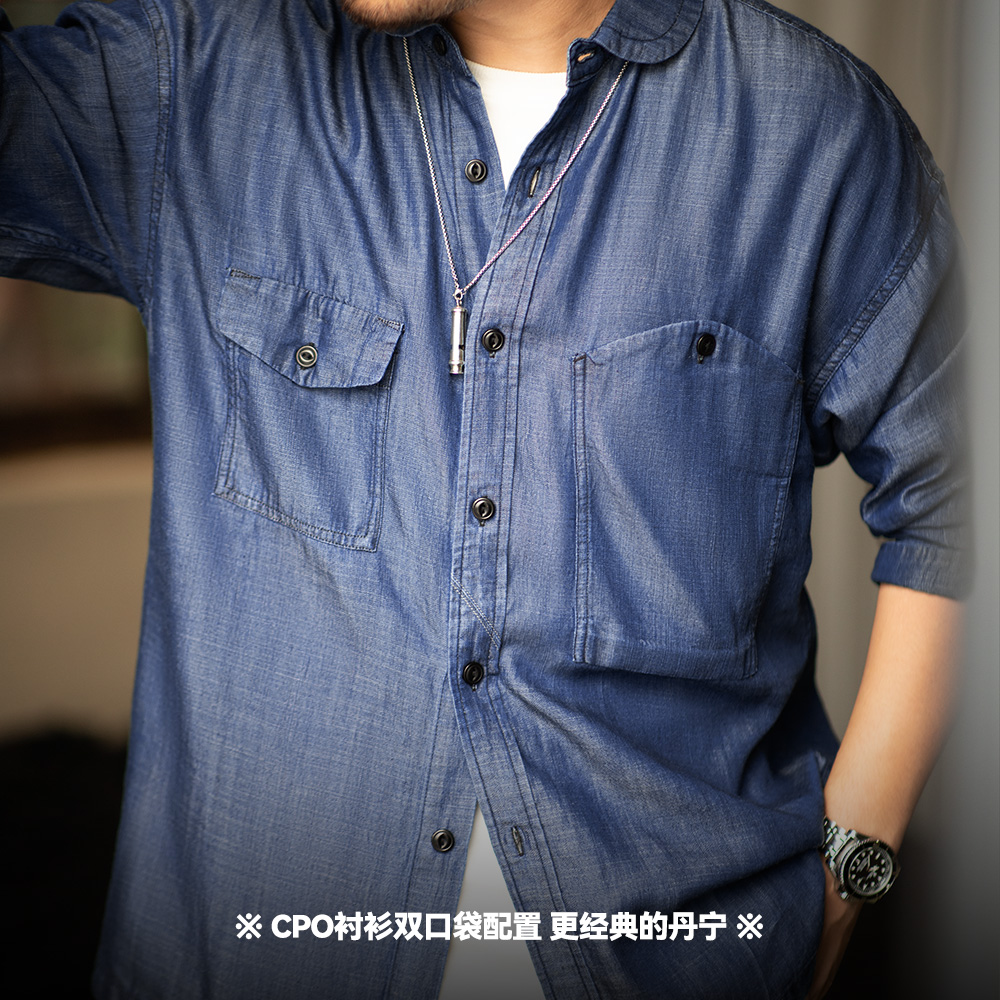 CPO衬衣外套男士 马登工装 丹宁莱赛尔长袖 复古天丝牛仔衬衫 秋 美式