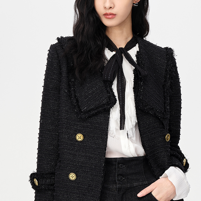 COCOBELLA静奢风珠片花纱毛呢外套短款 WL507 廓形小香风西装