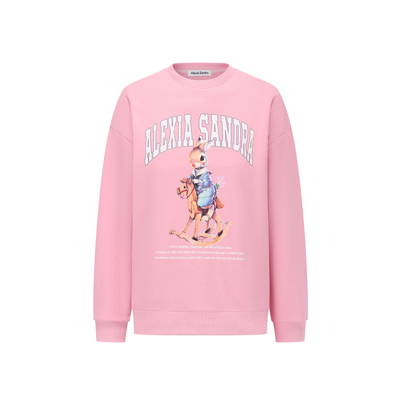 套头圆领卫衣 Sandra木马兔子印花落肩袖 黄霄云同款 Alexia