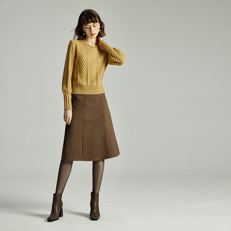 日系复古超好看半身裙子女士春秋装 小个子高腰显瘦夹棉A字裙 新款