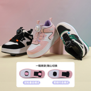 学生网红女孩 双轮隐形男童爆走鞋 儿童暴走鞋 自动可收轮女童轮滑鞋