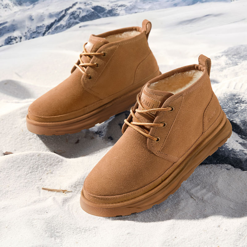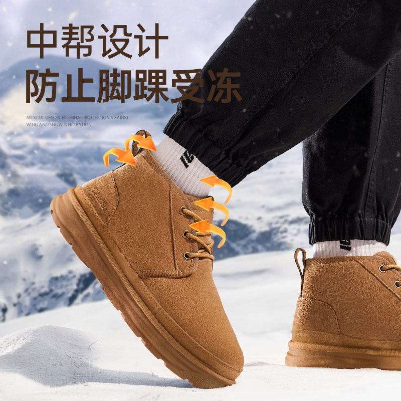 羊毛保暖雪地靴男加绒加厚反绒软皮防滑减震男鞋 骆驼冬季 新款