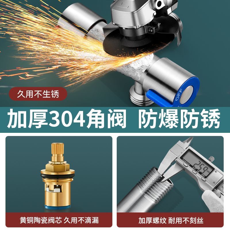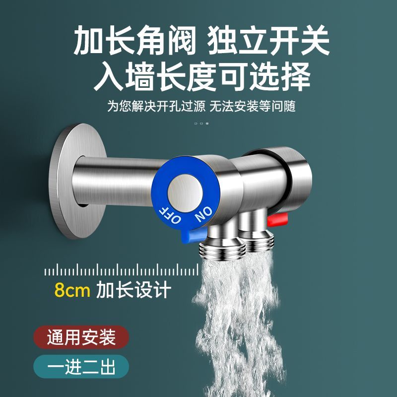 304不锈钢一进二出双控洗衣机马桶双头4分三角阀加长水龙头三通阀