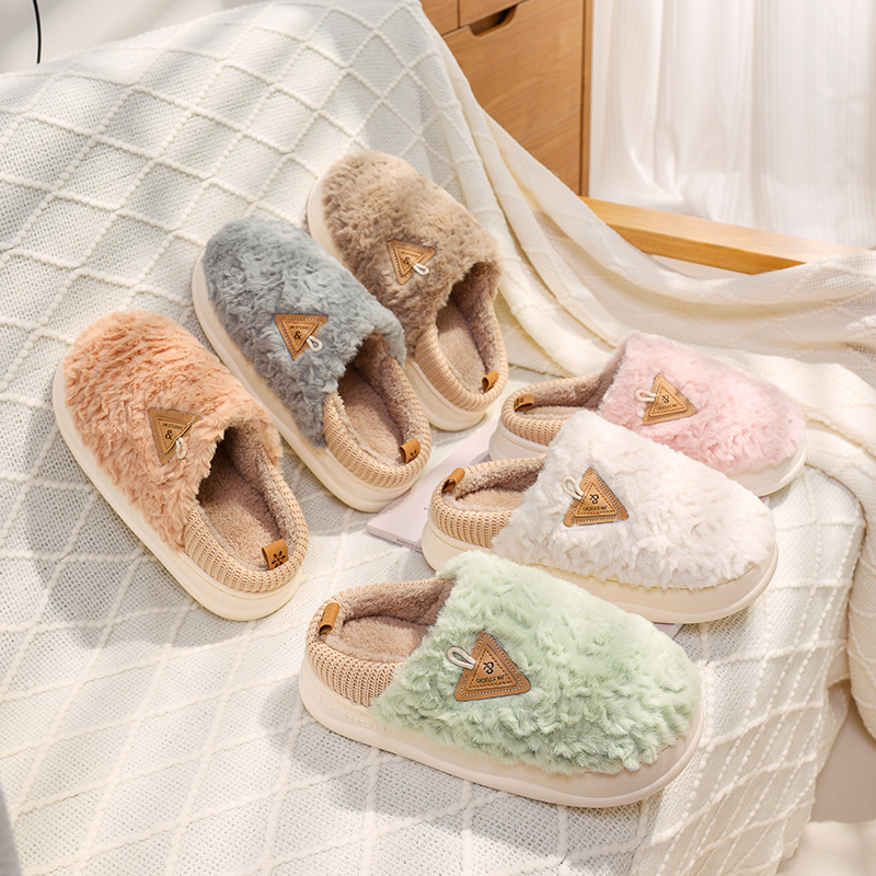 室内家居家用防滑厚底情侣保暖毛绒拖鞋 女士冬季 男 清仓棉拖鞋 断码