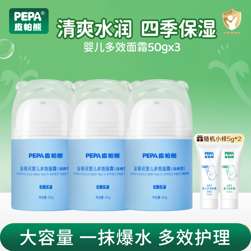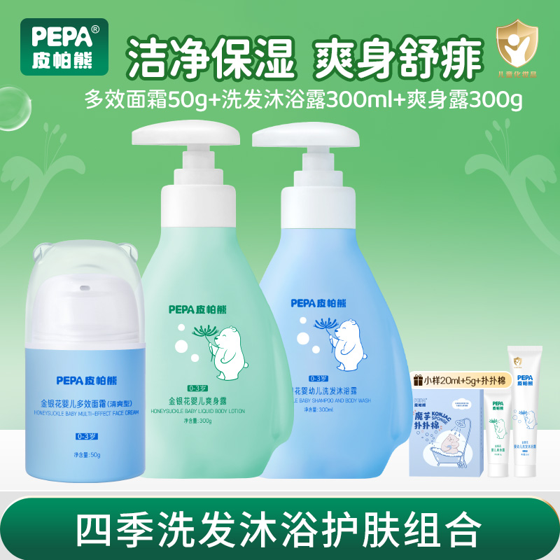 PEPA皮帕熊金银花多效面霜宝宝洗发沐浴露身体润肤乳新生洗护套装