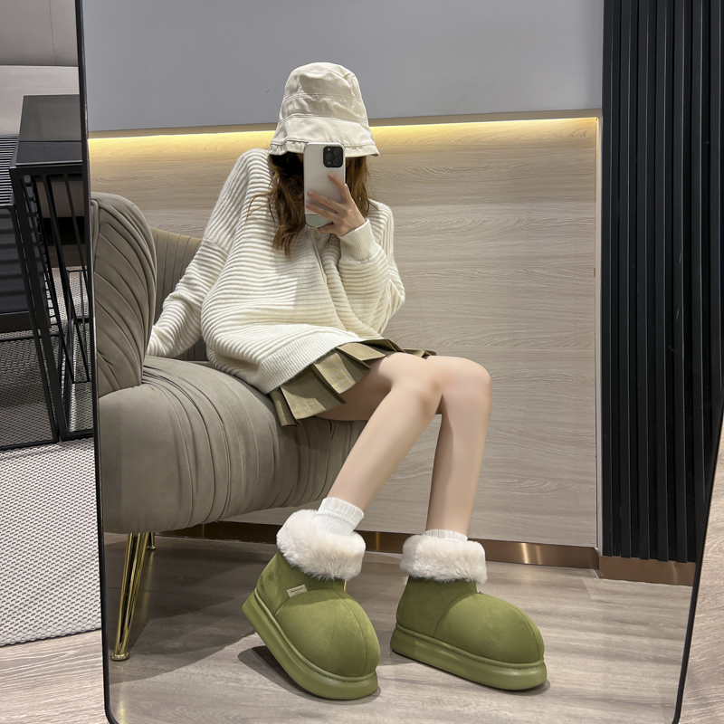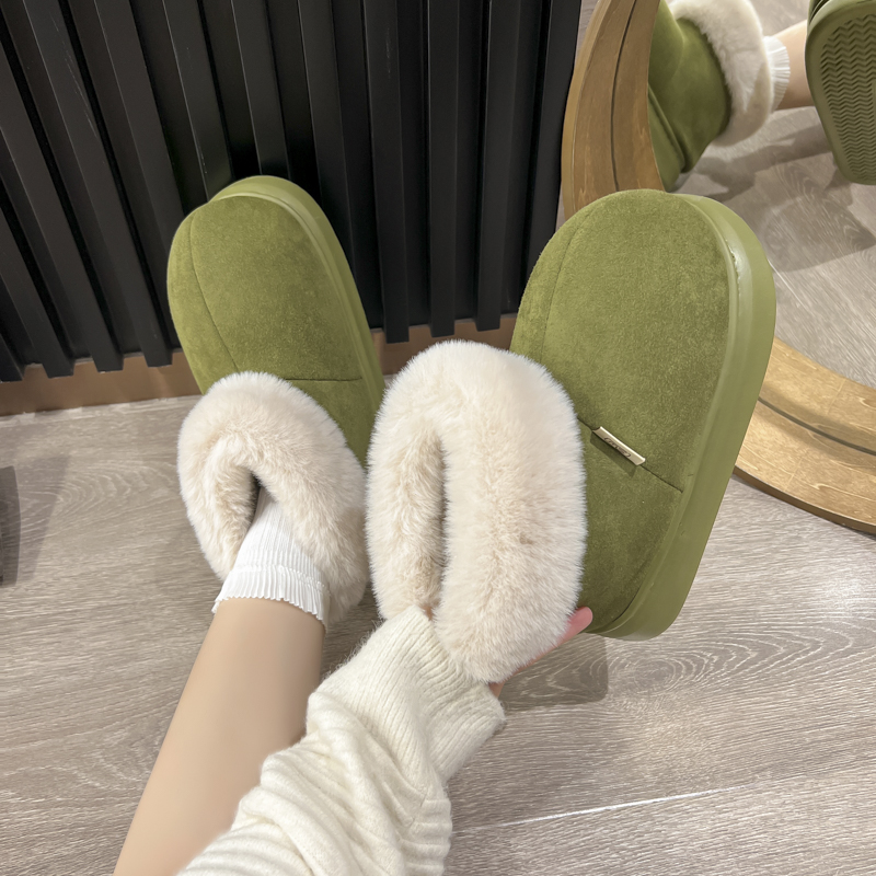 保暖全包跟月子棉鞋 秋冬季 外穿防滑 厚底加绒棉拖鞋 短筒雪地靴女款