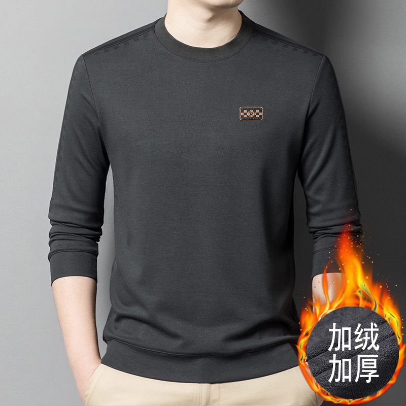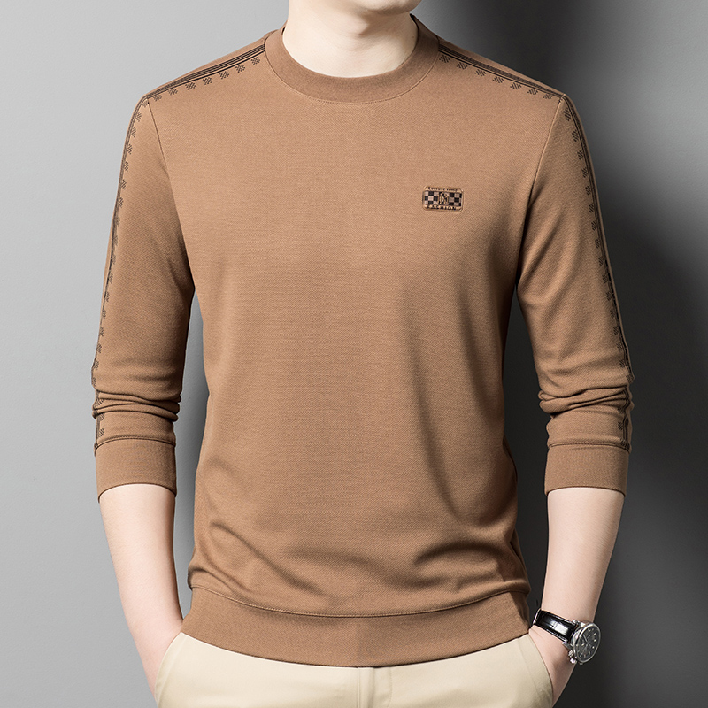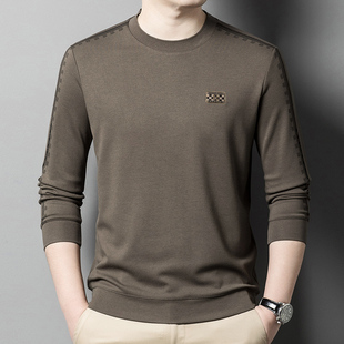 上衣刺绣卫衣宽松秋衣 中年爸爸秋装 冰丝长袖 t恤男圆领外穿打底衫