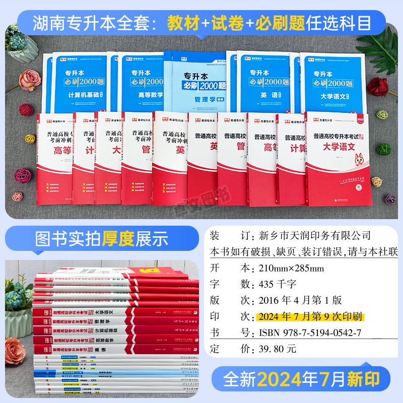 库课2025年湖南省专升本考试教材历年真题试卷必刷2000题英语高等数学语文管理学法学计算机基础教育学练习题库湖南省复习资料2024