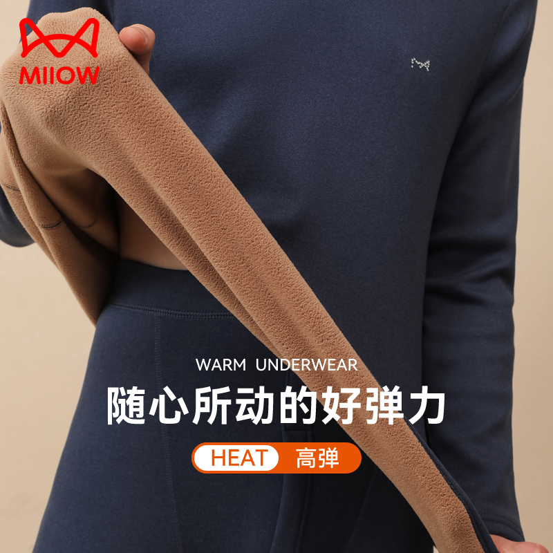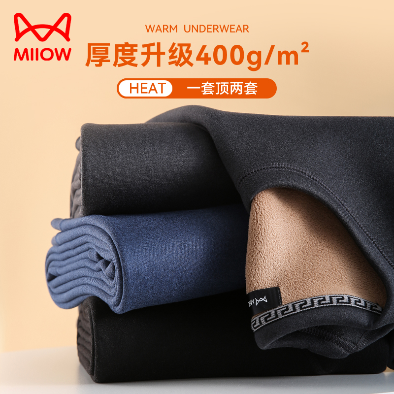 男士 打底棉毛衫 加绒加厚冬季 男款 发热防寒秋衣秋裤 猫人保暖套装