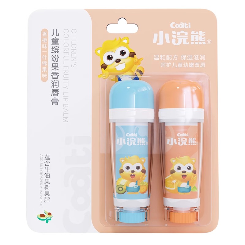 小浣熊婴幼儿童润唇膏清凉薄荷水果味宝宝滋润保湿 护唇膏2支正品