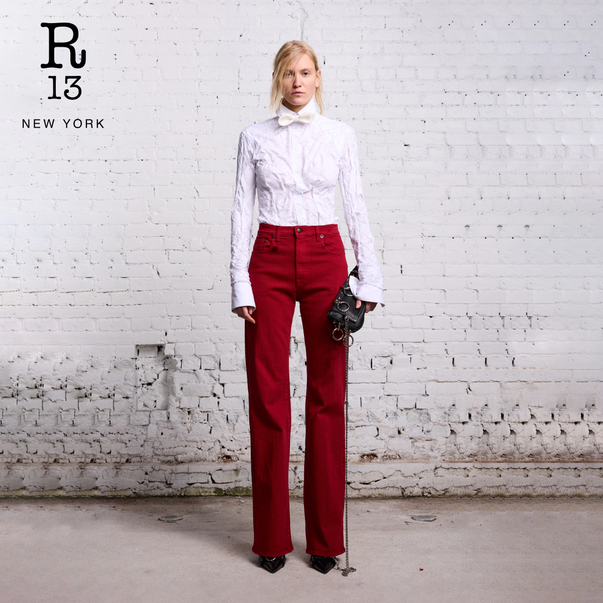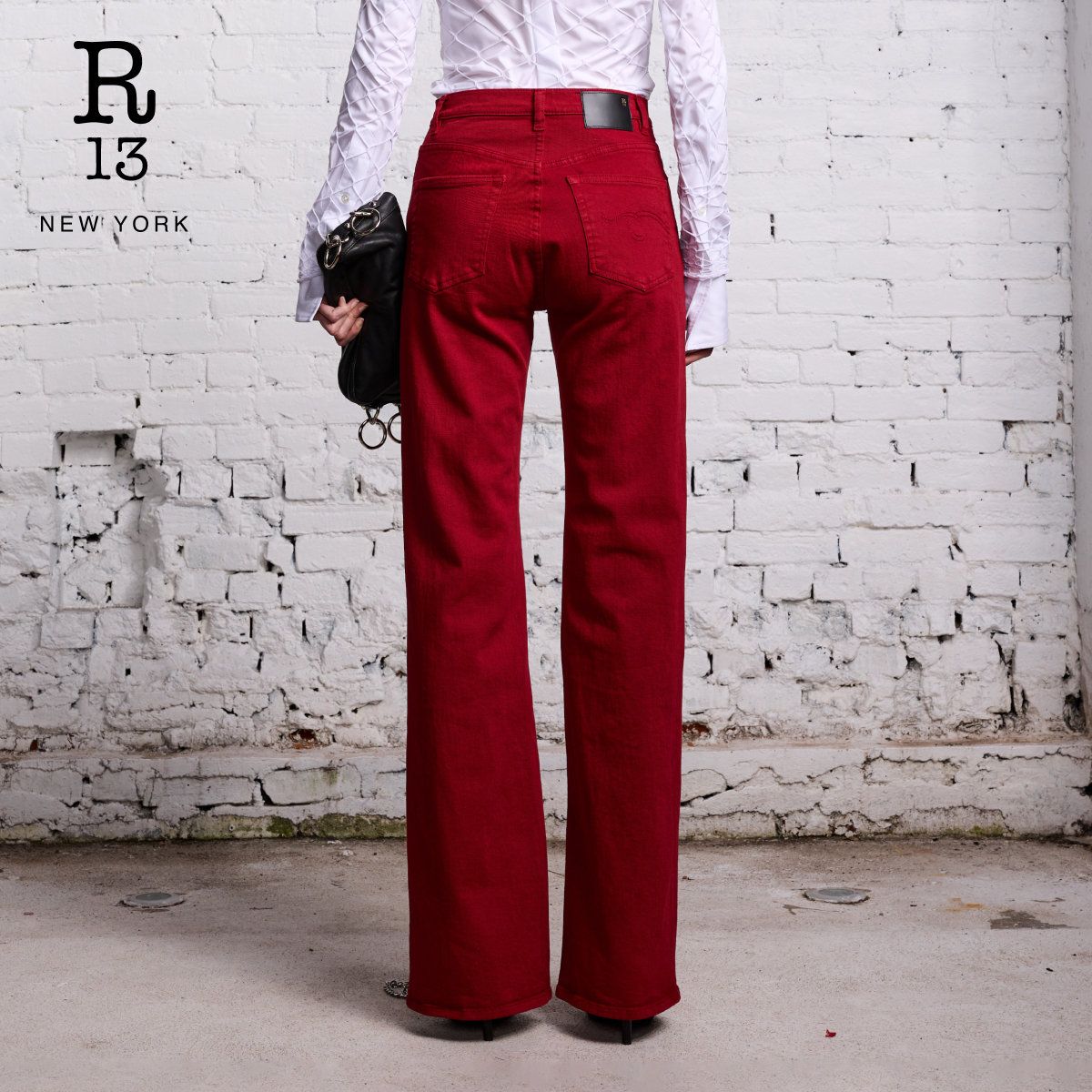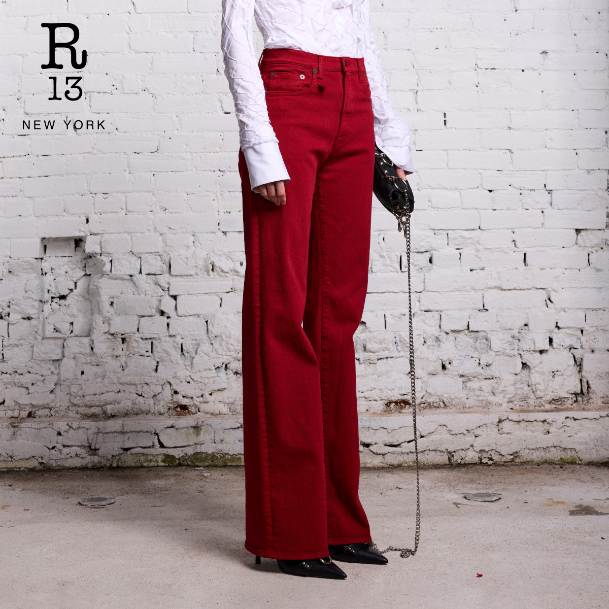 复古直筒弹力牛仔裤 R13 红色高腰修身 JANE 意大利制造 秋冬系列