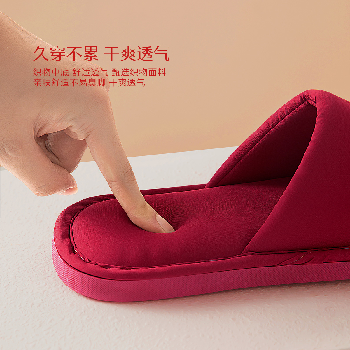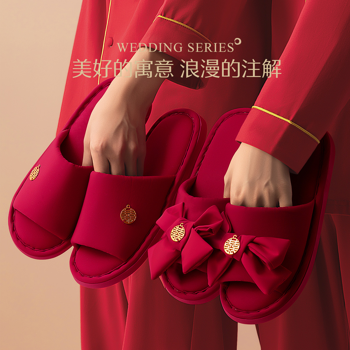 水星家纺婚庆情侣拖鞋 大红色喜嫁陪嫁居家日用结婚凉拖鞋
