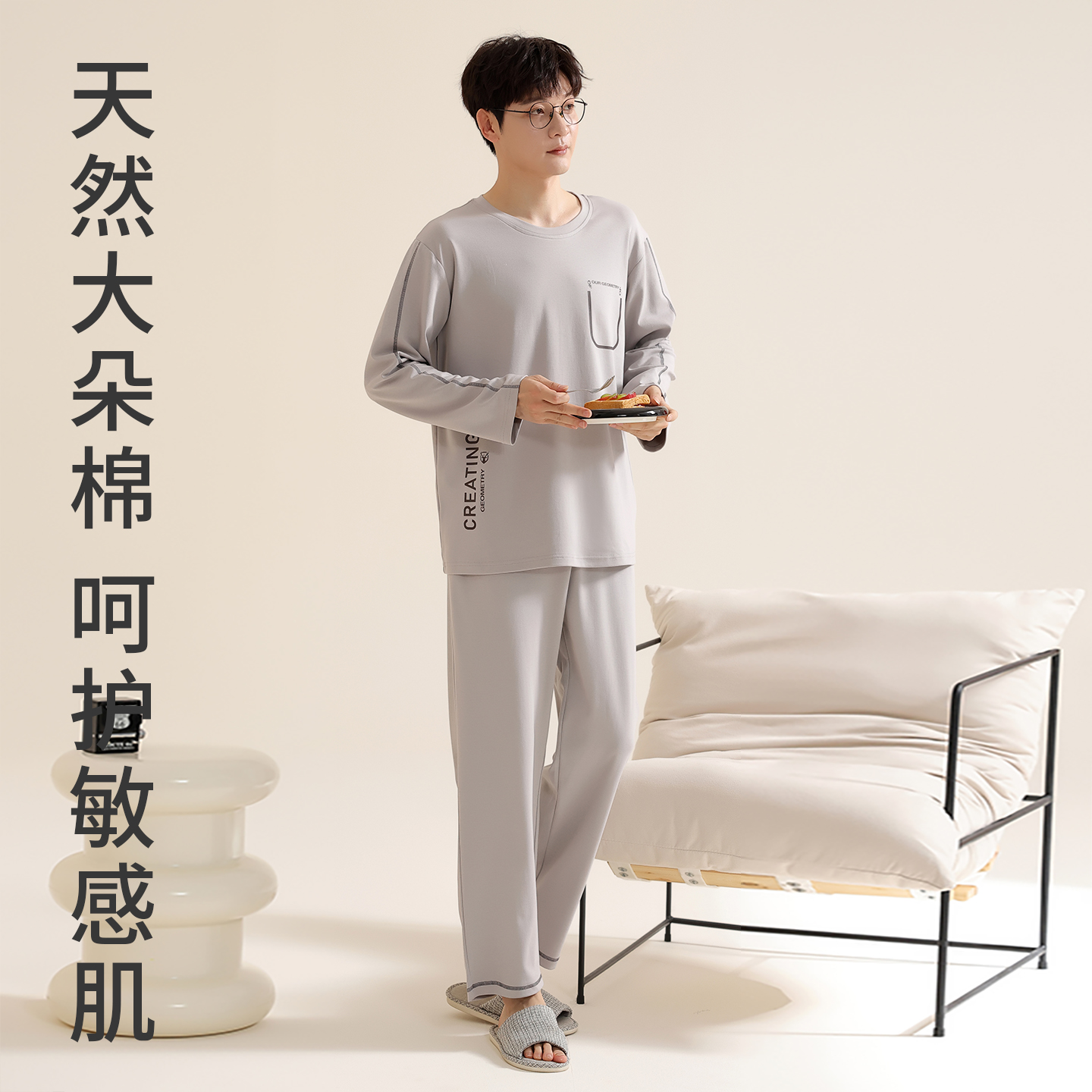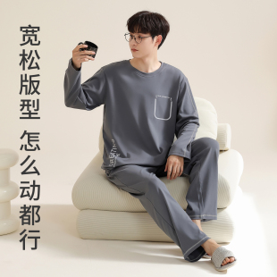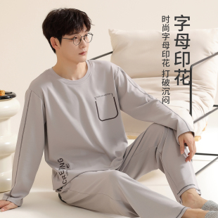 套头 长袖 新一步纯棉宽松睡衣男2025春秋款 字母印花居家服圆领长裤