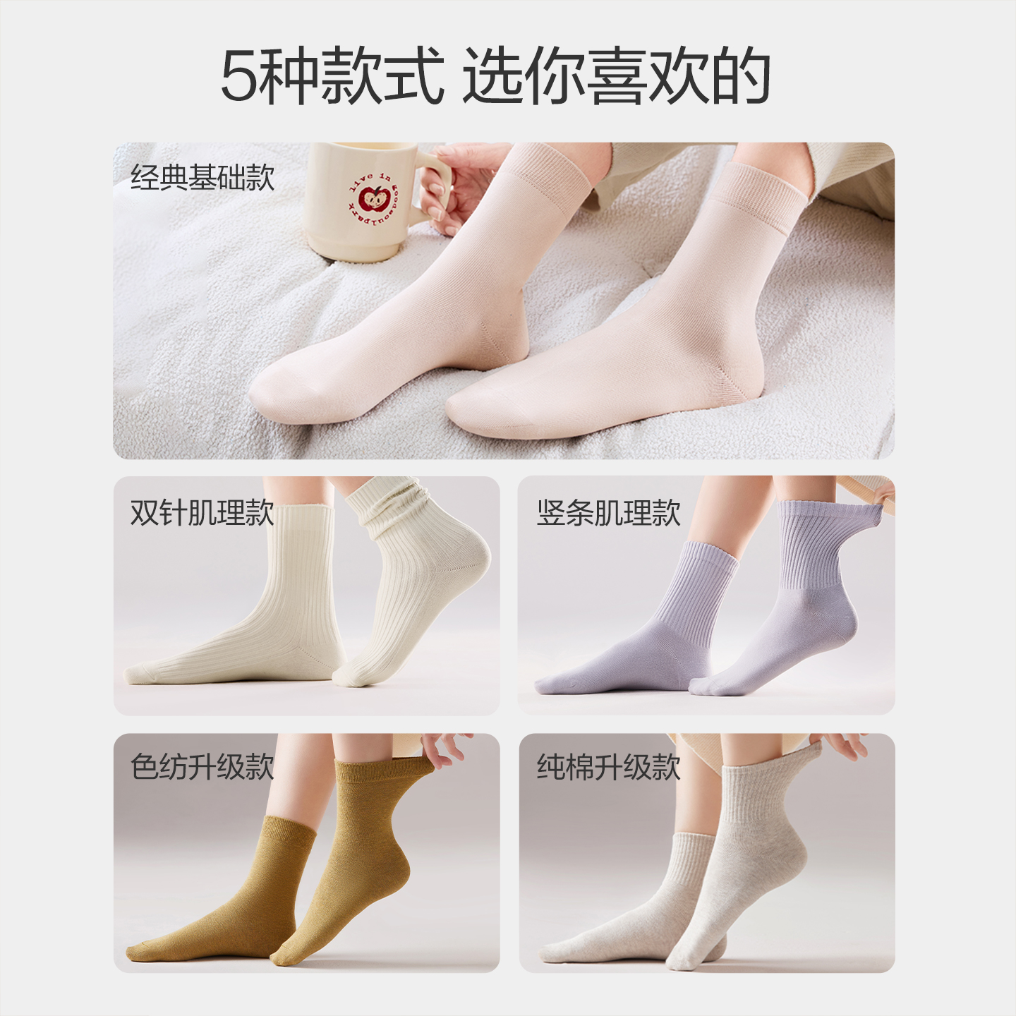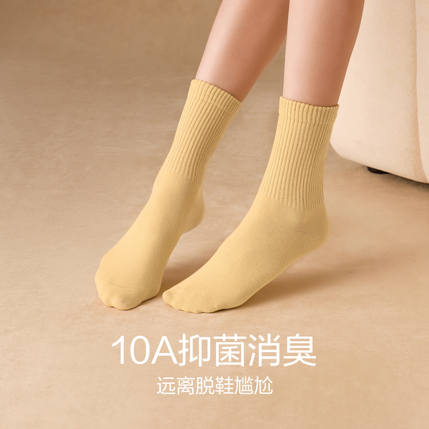 棉伙棉伴海藻袜舒适抗菌防臭男女商务运动纯色裸感中筒袜