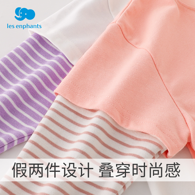 季 丽婴房女童长袖 女100%纯棉假两件上衣宝宝秋 童装 衣服 t恤春秋款