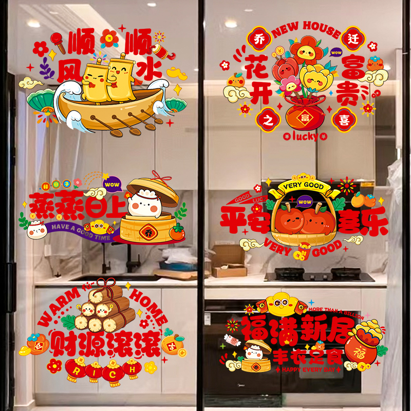 2024乔迁之喜装 用品 饰静电贴窗花新居布置福字门贴纸搬家入宅仪式