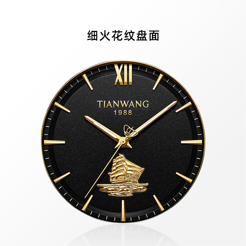 天王表24K金黄金浮雕一帆风顺商务自动机械男士 手表