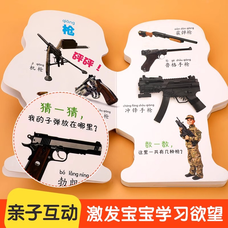 幼儿认知读本 王牌武器 硬壳撕不烂宝宝绘本2到3 5–6岁 幼儿军事启蒙书籍认识机枪手枪舰船坦克炮男孩儿童早教认知书 风靡英国