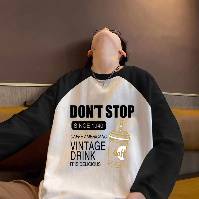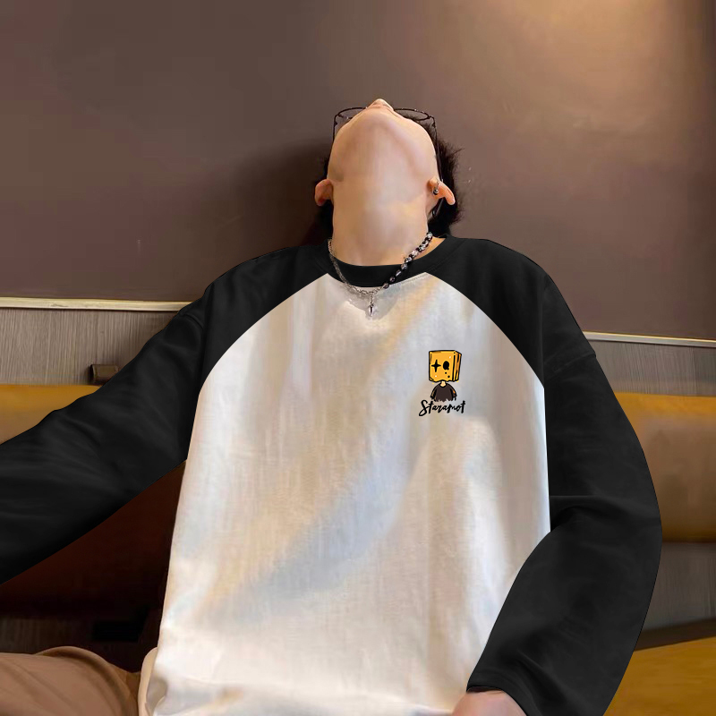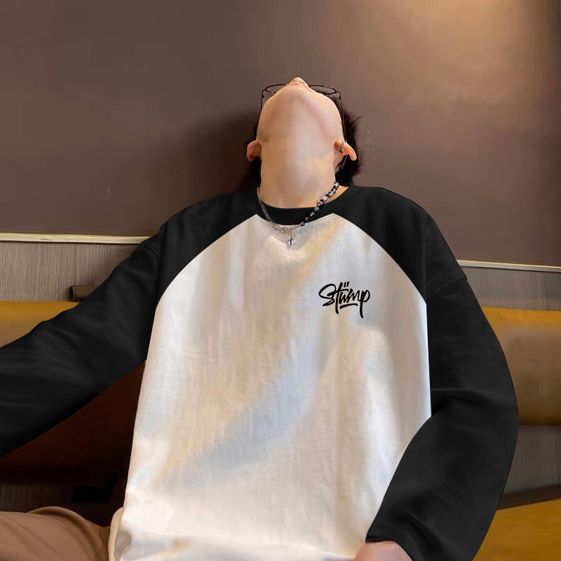 t恤男士 潮牌拼色内搭打底衫 春秋季 美式 卫衣 2025新款 纯棉插肩长袖